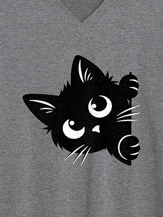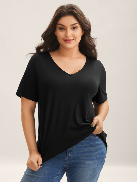 SAVE 30%Stretchy Back Cut-Out V-Neck T-Shirt