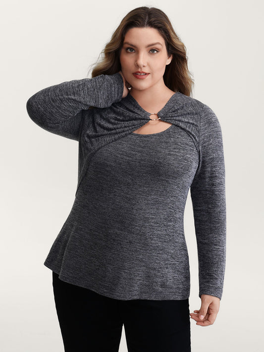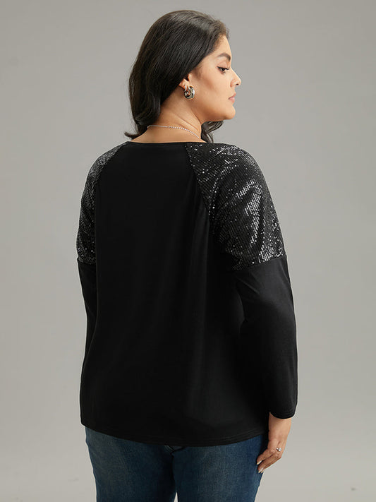 U Neck Chiffon Patchwork Bishop Sleeve T-shirt