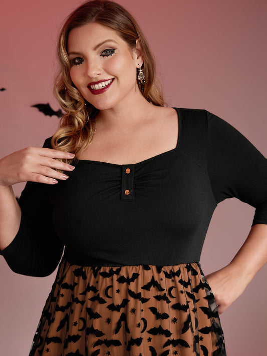 Timeless Halloween Print Stretchy Waist Sleep Dress