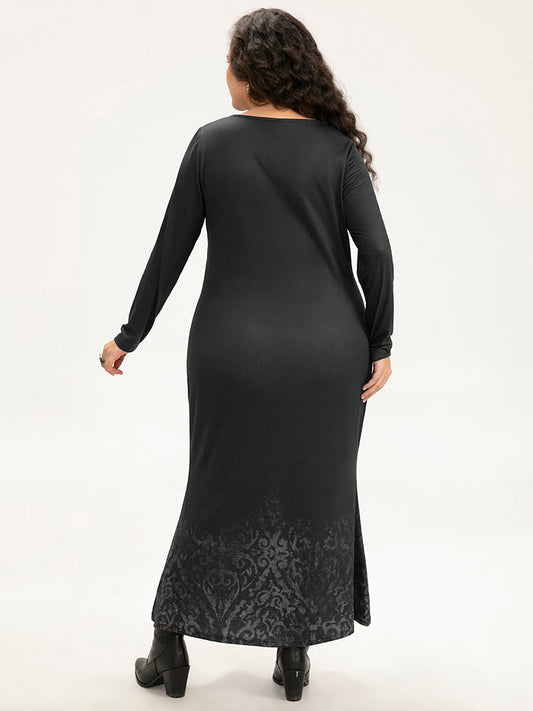 Plaid Contrast Sleeve Stretchy Hem Sweatshirt