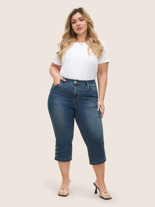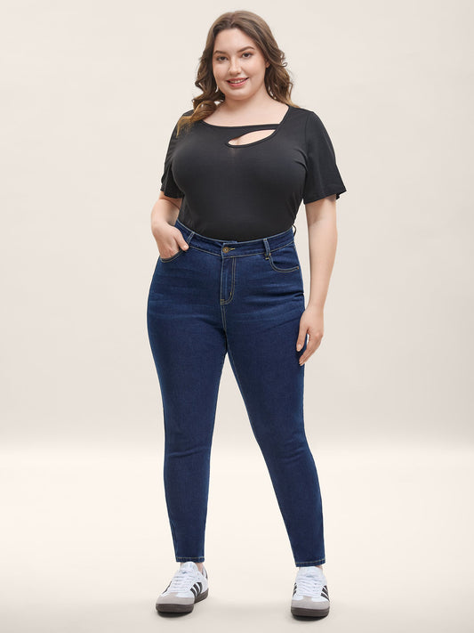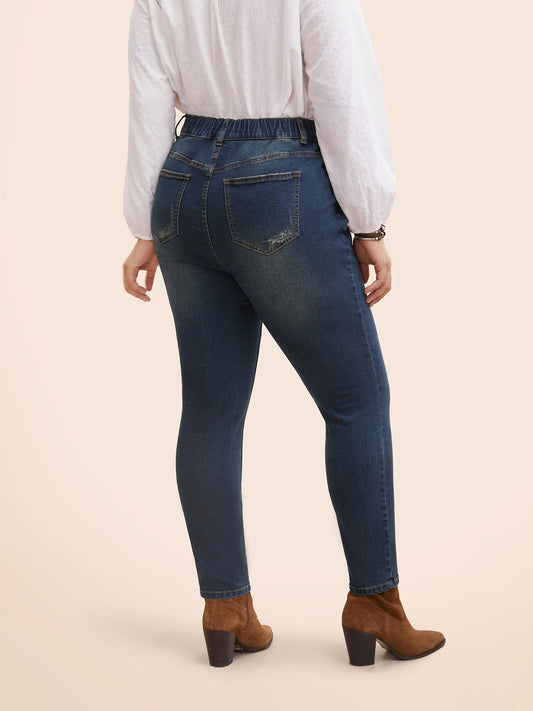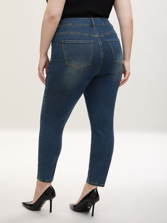 Very Stretchy High Rise Dark Wash Ripped Detail Cropped Jeans