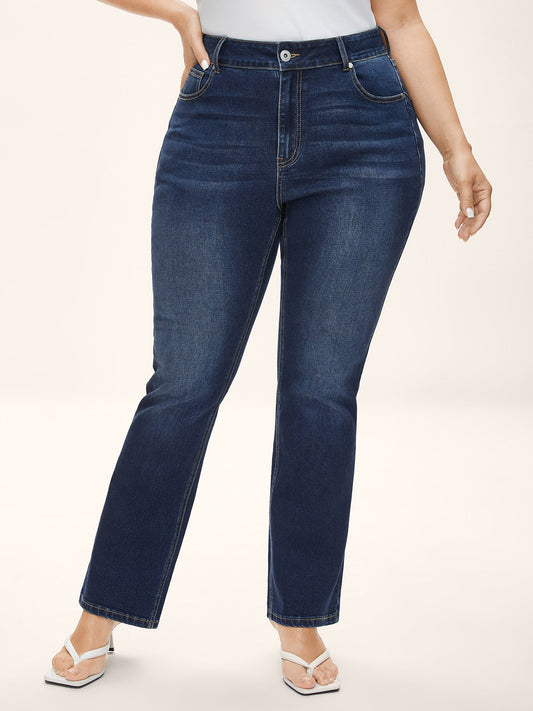 Retro Wash Stretchy Waist Straight-Leg Jeans