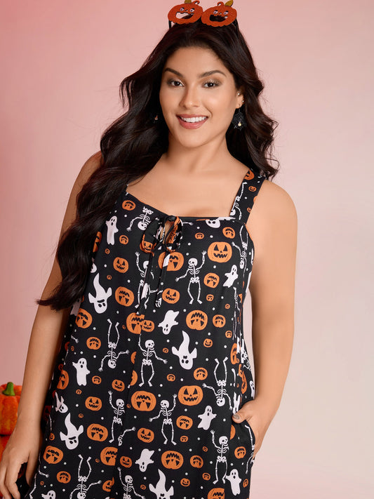Supersoft Halloween Print Pockets Sleep Jumpsuit