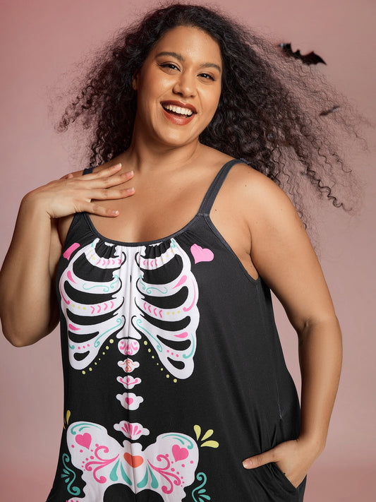 Cool Skeleton Print Stretchy Lounge Jumpsuit