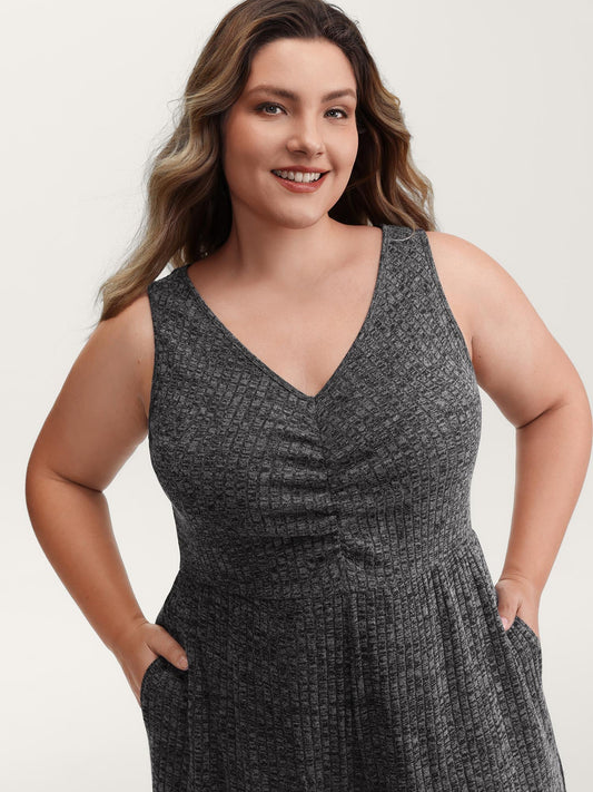 Stretchy Knit Pockets Cross Back Jumpsuit