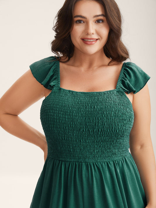 Textured Plain Pockets Wide-Leg Jumpsuit