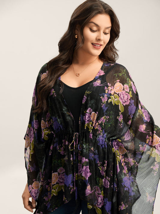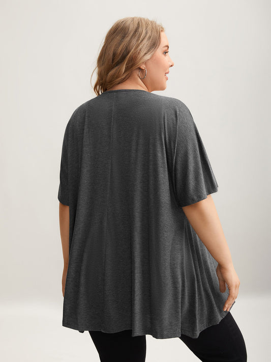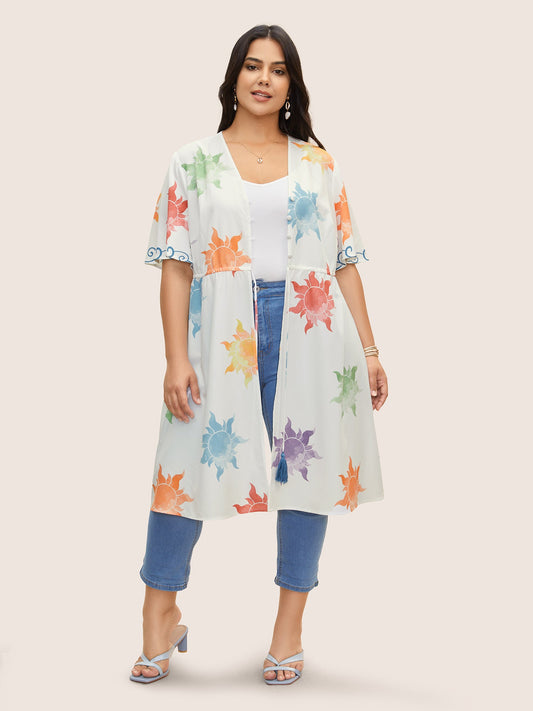 Plain Open Front Pocket Asymmetrical Hem Kimono