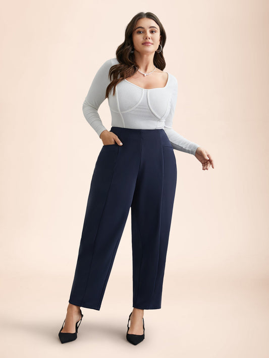 Ruched Tummy-Control Seamed Wide Leg Pants