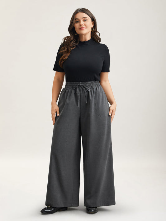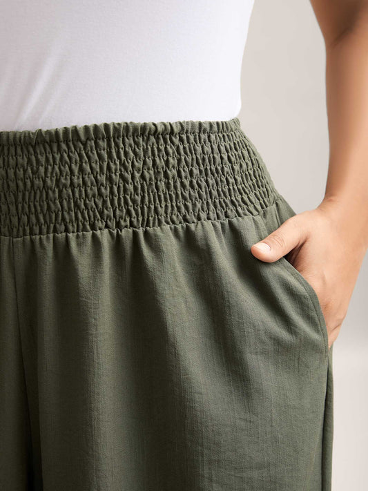 SAVE 50%Shirred Waist Wide-Leg Solid Pants