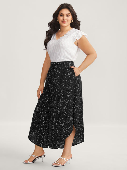Little Dots Asymmetrical Hem Slit Pants
