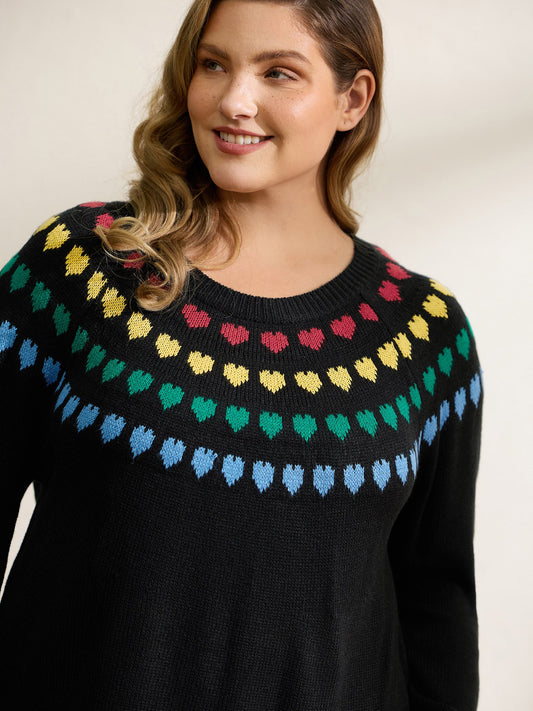 Fair Isle Floral Pattern Ribbed Hem Pullover