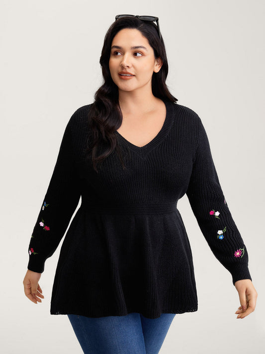 Floral Embroidery Textured Relaxed-Fit Pullover