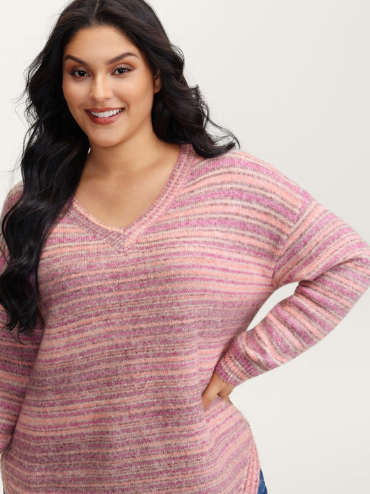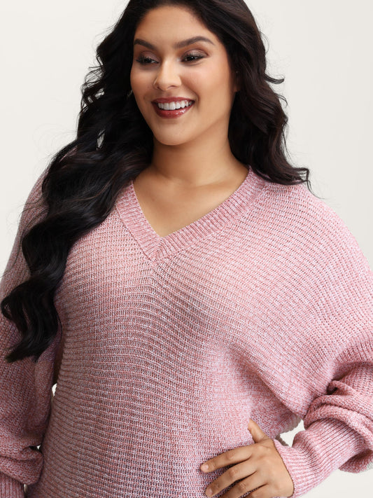 Ribbed Texture Curvy Hem V-Neck Pullover