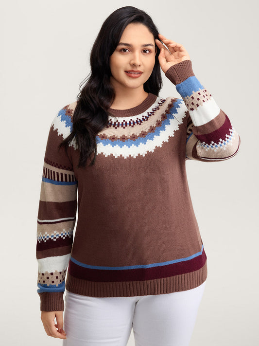 Fair-Isle Jacquard Pattern Contrast Pullover