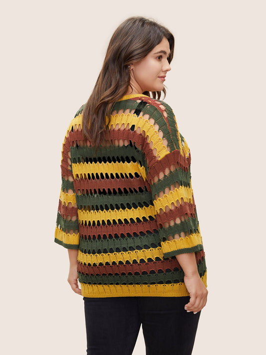 Deep V Neck Cut Out Stripes Contrast Pullover