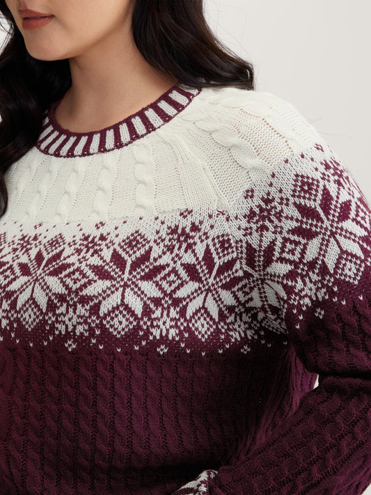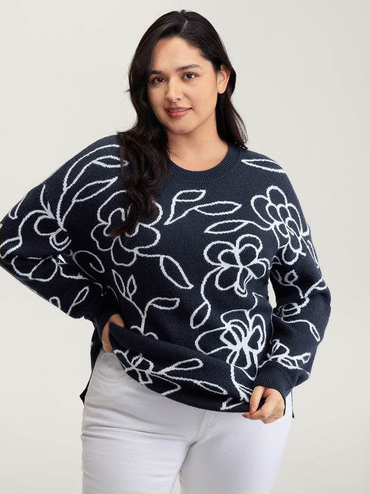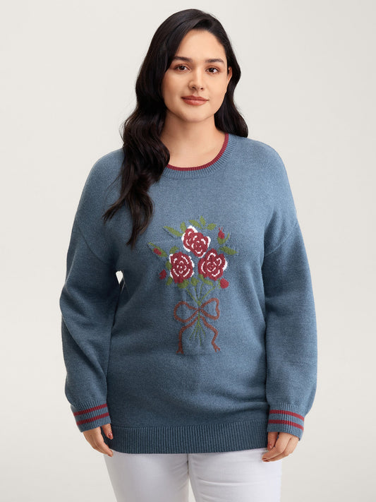 Supersoft Rosy Motif Contrast Round Neck Pullover