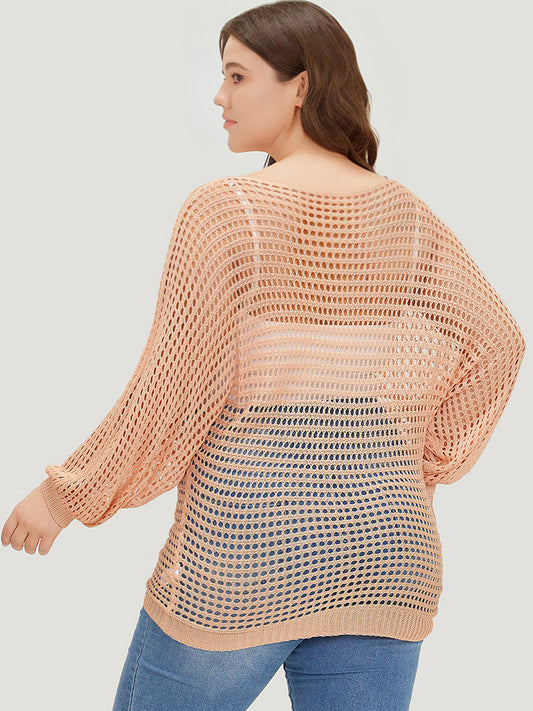 UltraCool Solid Hollow Out Batwing Sleeve Pullover