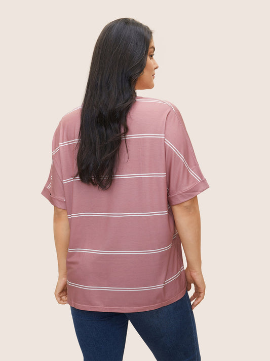 Floral Patchwork Round Neck Striped Ruffle Trim T-shirt