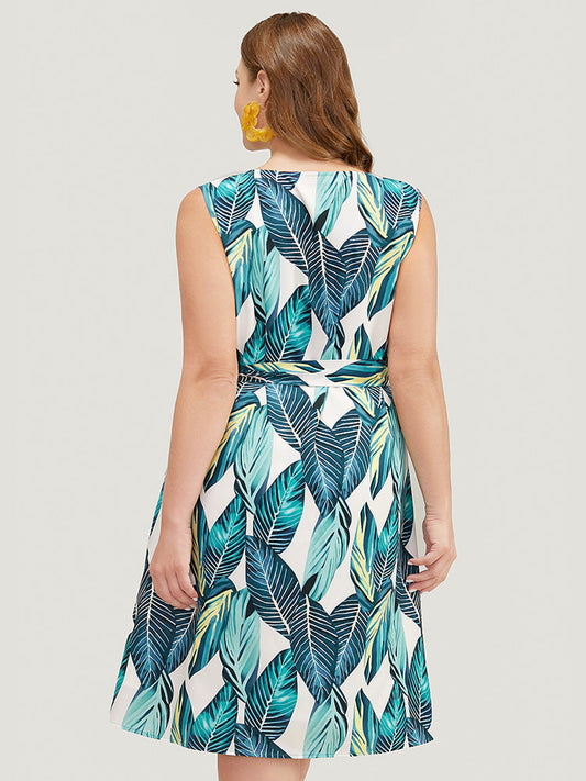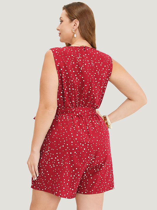 Polka Dot V Neck Pocket Sleeveless Belted Romper