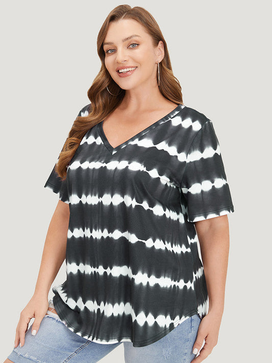 SAVE 60%Striped Tie Dye Curved Hem T-shirt