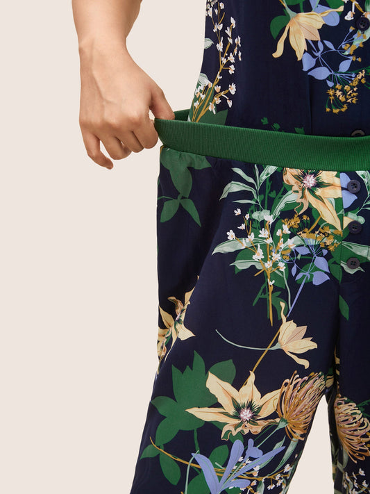 Natural Flowers Contrast Pocket Rib Knit Sleep Bottoms