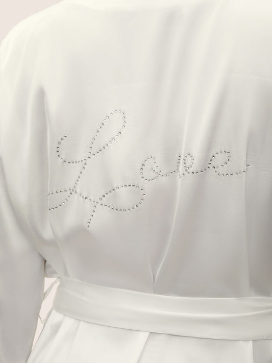 Solid Rhinestone Flutter Sleeve Belted Robe