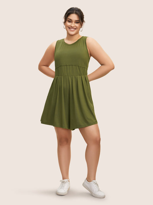 Plain Shirred Ruffle Trim Sleeveless Dress