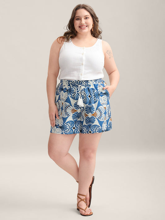 Cotton Embroidery Waist-Tie Straight-Fit Shorts