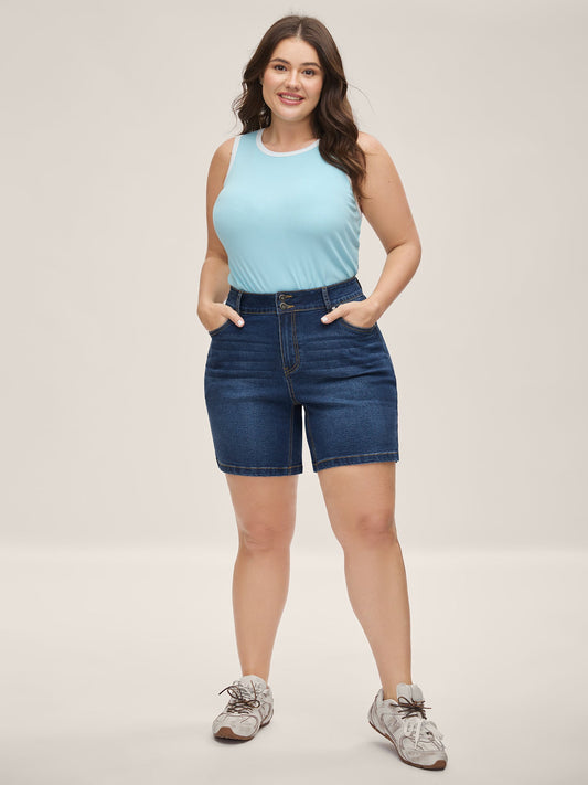 No-Gap Waist Button Detail Straight-Leg Shorts