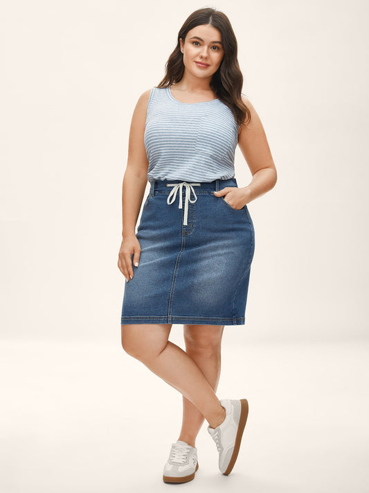 Stretchy Waistband Pull-On Denim Skirt