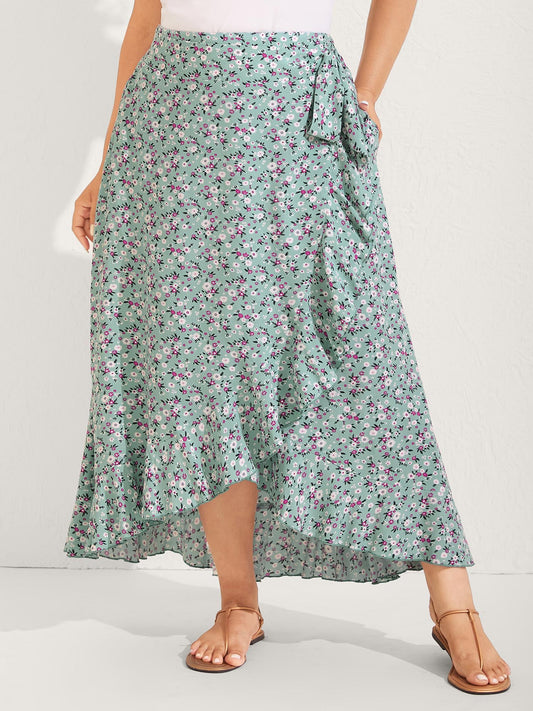 Rayon Ditsy Floral Print Side-Tie Maxi Skirt