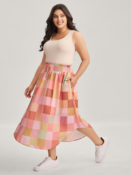 Colorful Patchwork Shirred Waist Midi Skirt