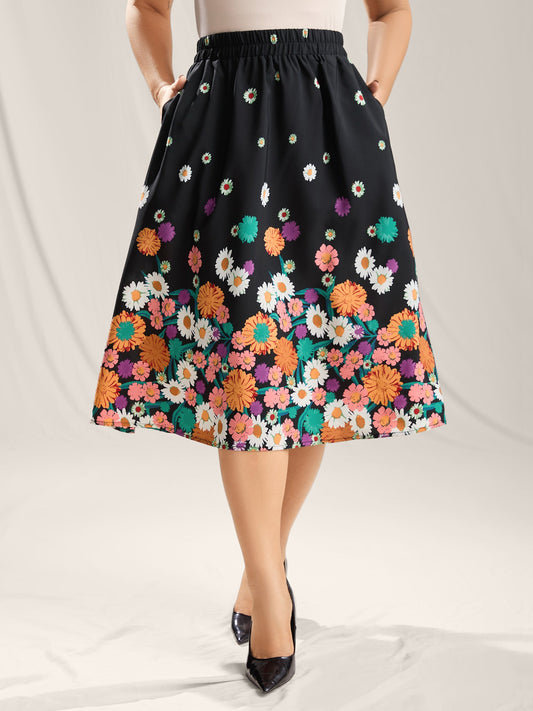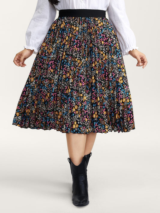 Floral Print Pleated Midi Skirt