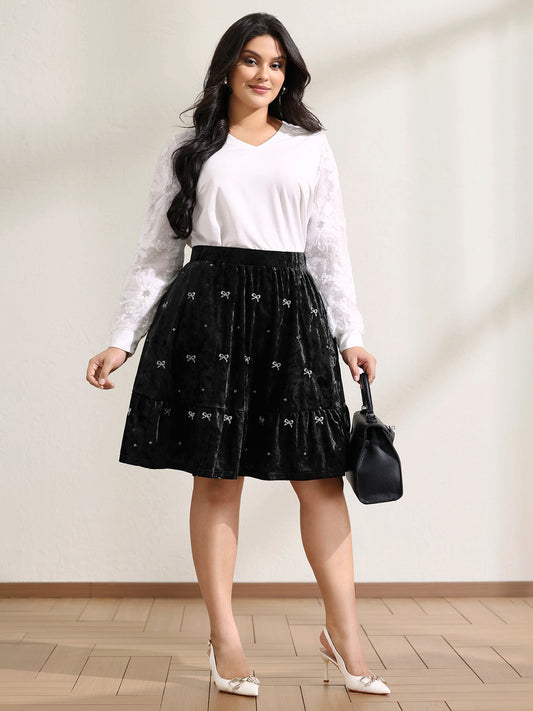 Velvet Bowknot Ruffled Mini Skirt