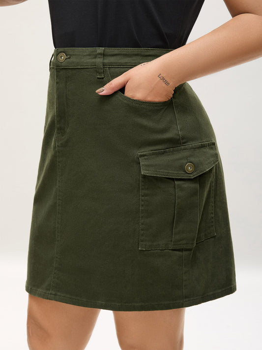 SAVE 50%Solid Button Detail Midi Skirt