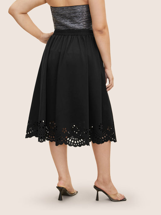 Laser Cut Elastic Waist Pocket Skirt