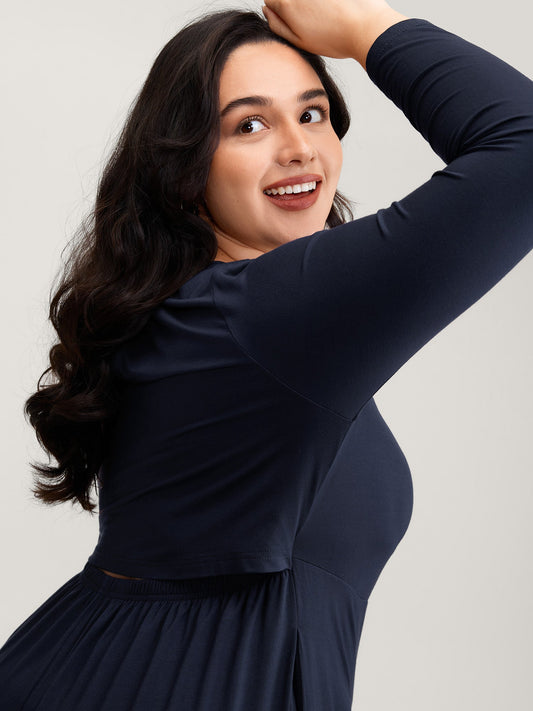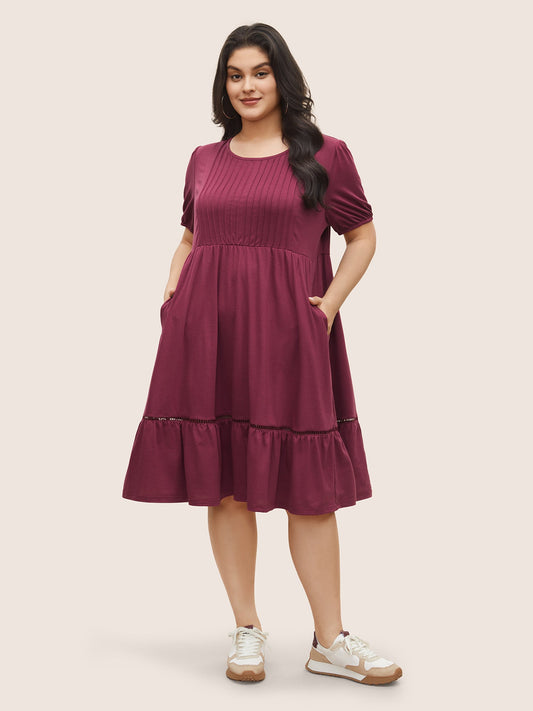 Supersoft Essentials Plain Pleated Patchwork Ruffle Hem Dress