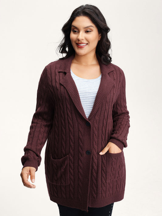 Twist Textured Notched Lapels Knit Cardigan