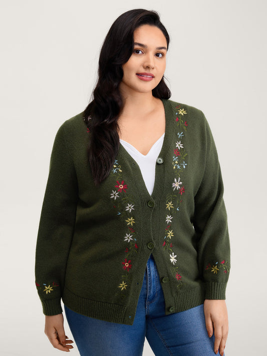 Supersoft Embroidered Button Knit Cardigan