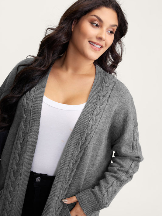 Cable Knit Side Pockets Knit Cardigan