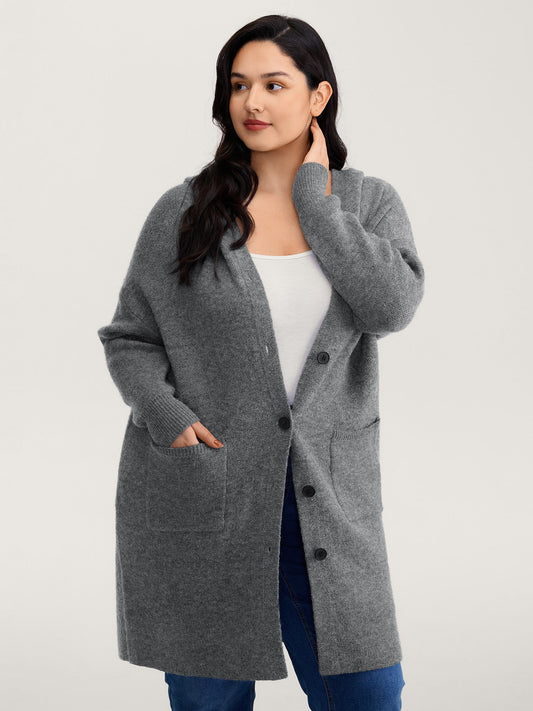 Hooded Button Slit Pockets Knit Cardigan
