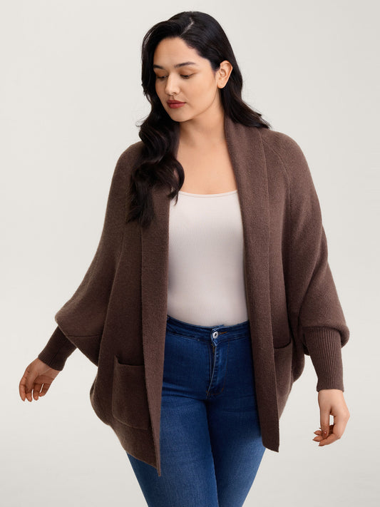 Folded Collar Dolman Sleeve Knit Cardigan