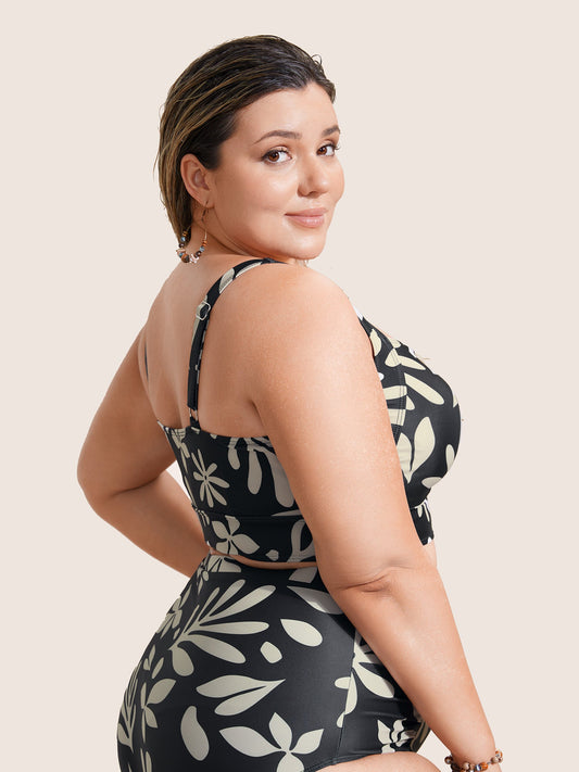 Leaf Print Contrast Lace Very Stretchy Swim Shorts