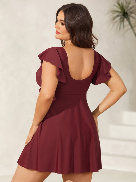 Ruffled Edge Waist-Tie Flared Swim Dress