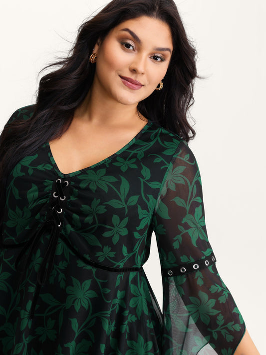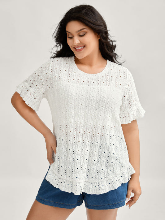 Petal Sleeve Curvy Hem Mesh Knit Top
