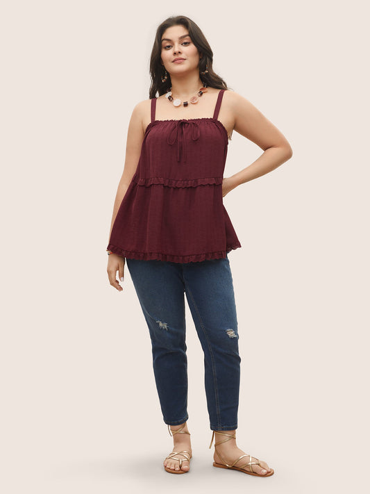 Solid Broderie Anglaise Lace Patchwork Ties Cami Top