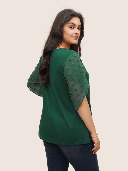 • Plisse Chiffon Patchwork Petal Sleeve T-shirt