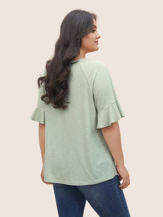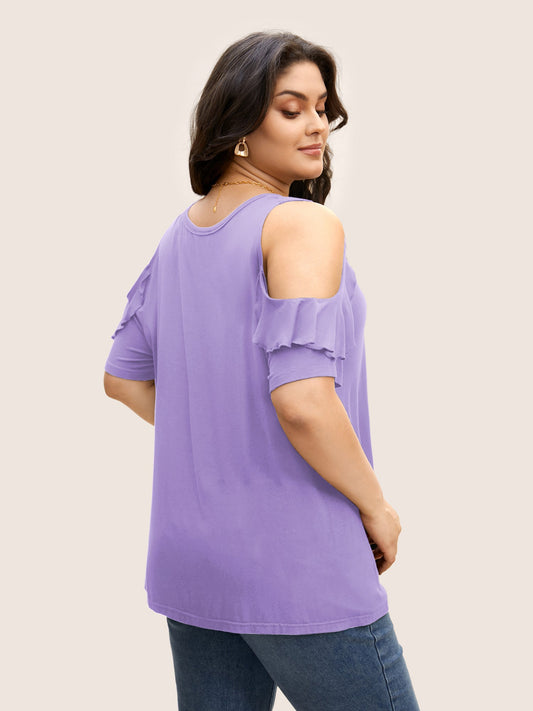 Solid Cold Shoulder Ruffle Trim T-shirt