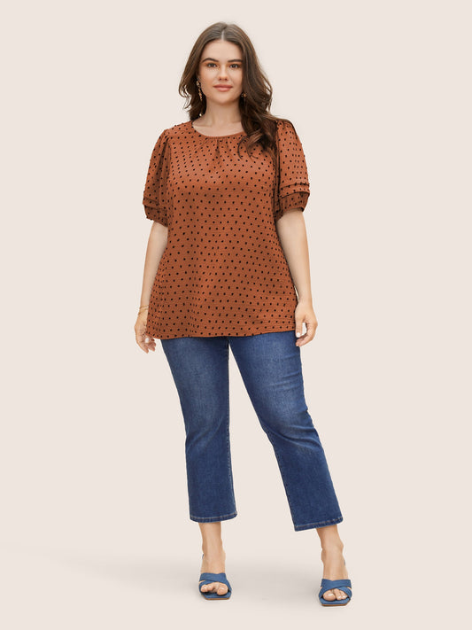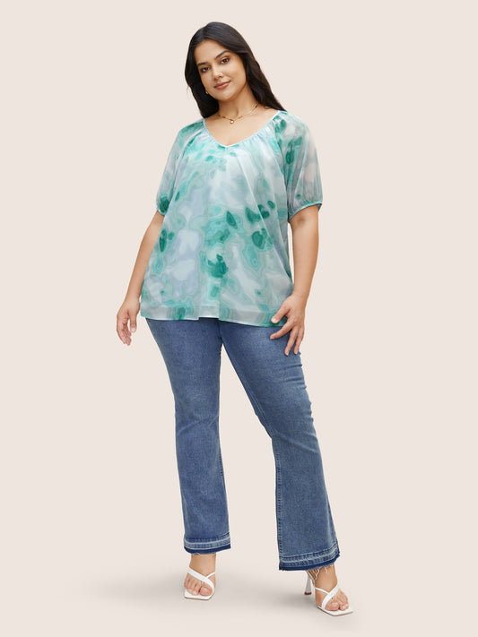 Synthetic Texture Raglan Sleeve Gathered Blouse