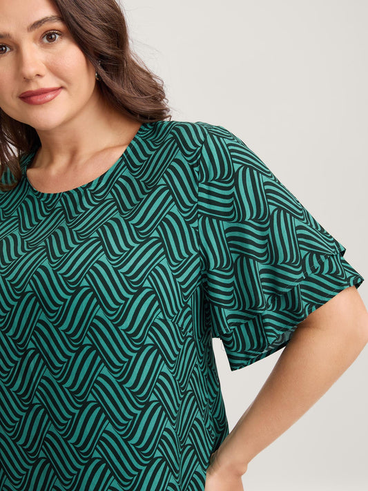 Rayon Geometric Print Layered Sleeve Blouse